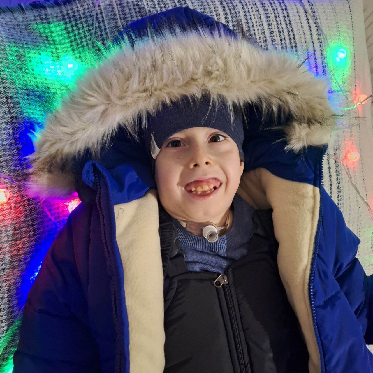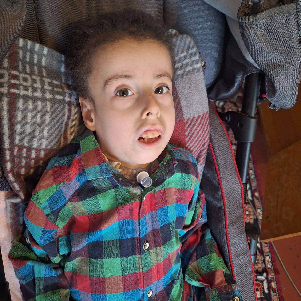 Today, Savelii requires constant medical care and attention. He takes medications, special enzymes for better food absorption, and high-calorie porridges. Savelii underwent two complicated surgeries and now has become a lifelong tracheostomy carrier, requiring special care, monthly replacement of the tracheostomy tube and a special saliva sanitization device. Bladder diverticulum is another complication that requires daily catheterization twice a day to remove urine residue. His mother has learned to take care of him on her own, to perform all the necessary surgeries, having skills similar to nursing, because the boy does not sit, stand, swallow food, etc. on his own and needs help 24/7. Savelii suffers from seizures and loves it when his parents hold him in their arms because it calms him down very well.